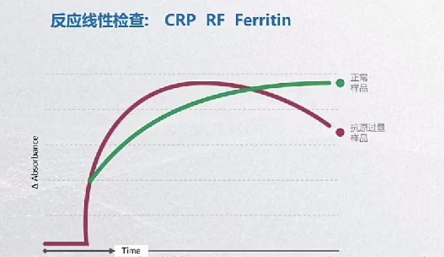 仪器反应线性参数的设置:通过对事件反应进程曲线的检测,计算反应不同时段的速率比值与预设的参数进行比较自动识别钩状效应的出现
